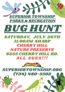 Join Superior Township Parks & Recreation at Cherry Hill Nature Preserve as we sweep the tall grass for all things creepy crawly to catch, observe, and learn what makes them important to the ecosystem around us.
